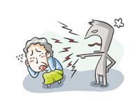 노인의 위협·협박하는 언어적 표현이나 감정을 상하게 하는 행동을 한다.