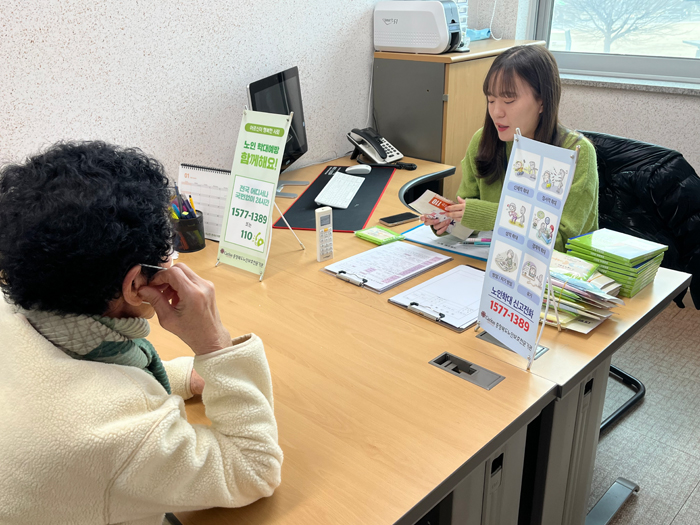 - 노인인구 집중지역 터미널, 보건소, 복지관, 시장 등 직접 방문하여 노인학대 상담 홍보